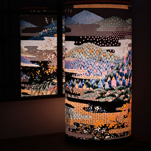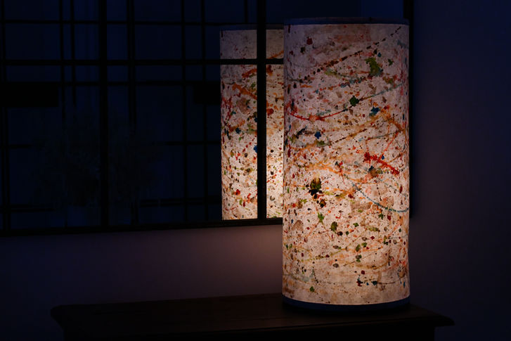 de lampes d’ambiance. A chaque Abat-jour réalisé en papier entièrement à la main est mis en exergue les motifs et les couleurs au travers d'une lumière douce et chaleureuse. Le tout s’exprime harmonieusement.